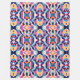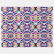 This design features a fluid, abstract pattern with a symmetrical, mirrored layout. Wavy, organic shapes interlock seamlessly, forming a bold yet harmonious composition. The colour palette blends deep purples, blues, teals, pinks, and warm yellows, creating a lively contrast. The layered effect gives a sense of movement, almost like flowing liquid or undulating fabric. The soft curves and bold colours combine to evoke a mix of retro and modern aesthetics, reminiscent of psychedelic patterns or mid-century-inspired motifs.