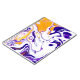 Fluid art texture. Abstract decor with swirling paint effect. Liquid acrylic artwork with flows and splashes. Mixed paints for baner or wallpaper. Purple, white and golden overflowing colours.