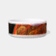 This is a heavy, durable bowl decorated with Tibbies of many colors, the perfect size for hungry/thirsty Tibs. The design is interesting and printing clear.