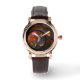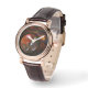 Fluid Connection Abstract Art Perfect Square Brown Leather Watch