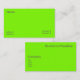 Business card in fluorescent green solid colour background and grey fonts .Simple and trendy design by Alma Wad .Personalise both sides now .It comes 100 in a pack .
