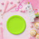 These paper plates are featured in Fluorescent Green, a bright, vibrant, slightly yellowish lime green. Easily customise this product with your own text, image or photo.