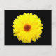 A photo of a pretty fluorescent yellow marigold flower on a black background.