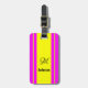 Luggage tag featuring a printed fluorescent neon yellow green striped design on fuchsia. The back shows an additional custom shape as background for your address information. This can scaled to your needs or deleted if you don't need it. A truly eye-catching luggage tag to make it easy to find your bag at a busy airport.