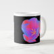 This awesome mug features a beautiful photograph of a tulip. The photograph has been artificially coloured resulting in a fluorescent tulip. The outer petals are coloured with shades of blue and red, while the inner petals show shades of pink and purple. The very centre of the flower is bright yellow. The simple black background shows off the stunning beauty of this flower.
