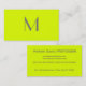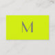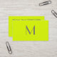 Business card in fluorescent yellow (#DFFF00) solid colour background and a bold monogram .Personalise both sides now . Modern and trendy design by Alma Wad .It comes 100 in a pack .