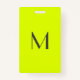 Badge with a vibrant shade of yellow called "fluorescent yellow" . It features a solid-colour background and a dark grey font. Sleek design by Alma Wad Personalise it with your monogram now. You can add more details like name /logo /position etc.