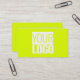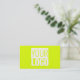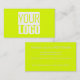 Business card in fluorescent yellow (#dfff00) solid colour background and a cover logo .Personalise both sides now . Modern and trendy design by Alma Wad .It comes 100 in a pack .