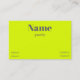 Business card in fluorescent yellow ( #DFFF00 )solid colour background and grey fonts .Bold and trendy design by Alma Wad .Personalise both sides now .It comes 100 in a pack .Standard Australian & Japanese business card size .