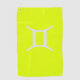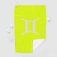 Golf towel with fluorescent yellow solid colour background and light grey zodiac symbol of the Gemini .Simple and trendy design by Alma Wad .