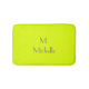Bath Mat in fluorescent yellow (#DFFF00) solid colour background and and grey fonts .Simple and trendy design by Alma Wad .Personalise it with your name and monogram now .