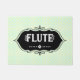 Flute in decorative text against a white emblem is a unique gift design for woodwind musicians, music teachers and students in concert and marching band.