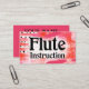 Colourful arty Flute instruction business cards in hot pink, orange, black and white.