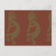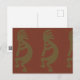 Flute Playing Kokopelli Figure, Green on Rust Red Postcard