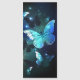 Fabulous, glowing, blue and yellow, night butterfly on dark background.