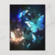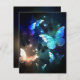 Fabulous, glowing, blue and yellow, night butterfly on dark background.