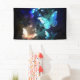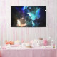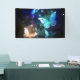 Fabulous, glowing, blue and yellow, night butterfly on dark background.