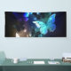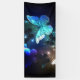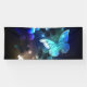 Fabulous, glowing, blue and yellow, night butterfly on dark background.