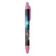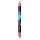 Fabulous, glowing, blue and yellow, night butterfly on dark background.