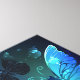 Fabulous, glowing, blue and yellow, night butterfly on dark background.
