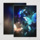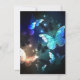 Fabulous, glowing, blue and yellow, night butterfly on dark background.