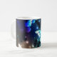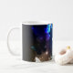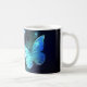 Fabulous, glowing, blue and yellow, night butterfly on dark background.