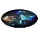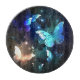 Fabulous, glowing, blue and yellow, night butterfly on dark background.