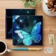 Fabulous, glowing, blue and yellow, night butterfly on dark background.