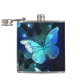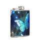 Fabulous, glowing, blue and yellow, night butterfly on dark background.