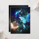 Fabulous, glowing, blue and yellow, night butterfly on dark background.