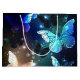 Fabulous, glowing, blue and yellow, night butterfly on dark background.