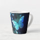 Fabulous, glowing, blue and yellow, night butterfly on dark background.