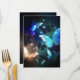 Fabulous, glowing, blue and yellow, night butterfly on dark background.