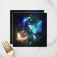 Fabulous, glowing, blue and yellow, night butterfly on dark background.