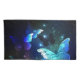 Fabulous, glowing, blue and yellow, night butterfly on dark background.