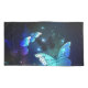 Fabulous, glowing, blue and yellow, night butterfly on dark background.