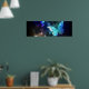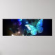 Fabulous, glowing, blue and yellow, night butterfly on dark background.