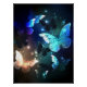 Fabulous, glowing, blue and yellow, night butterfly on dark background.