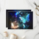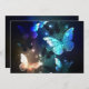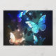 Fabulous, glowing, blue and yellow, night butterfly on dark background.