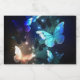 Fabulous, glowing, blue and yellow, night butterfly on dark background.