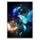 Fabulous, glowing, blue and yellow, night butterfly on dark background.