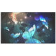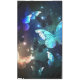 Fabulous, glowing, blue and yellow, night butterfly on dark background.