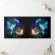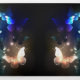 Fabulous, glowing, blue and yellow, night butterfly on dark background.