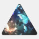 Fabulous, glowing, blue and yellow, night butterfly on dark background.