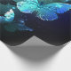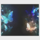 Fabulous, glowing, blue and yellow, night butterfly on dark background.