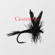 Black silhouette of a fly-fishing dry fly to customise with your own greeting, name, message, etc