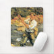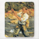 Vintage artwork of a fly fisherman in a stream with pipe in his mouth