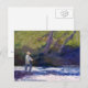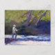 Fly Fishing on the Wissahickon. Fisherman wading in the water and casting his line. Fishing art by ©REIFSNYDER. Scene colours are green and blue.
