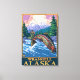 Fly Fishing Scene - Wrangell, Alaska - Vintage Travel Poster was created in 2007. This image depicts scenes from Wrangell, AK.