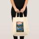 The printing came out very well, better than I had anticipated. The natural color fabric is sturdy with strong seams and comfortable handles. This tote fits easily over my shoulder. As it is filled, the bottom flattens out--very cool! I would buy this product again. This grocery tote holds a lot of groceries! The image quality was very good. The colors were a little darker than I had expected. The darkness may have been due to printing on a natural color fabric rather than on white. The cat design is attractively centered on the tote. The spirit of the design is very lively, just as it appears on the Zazzle website.